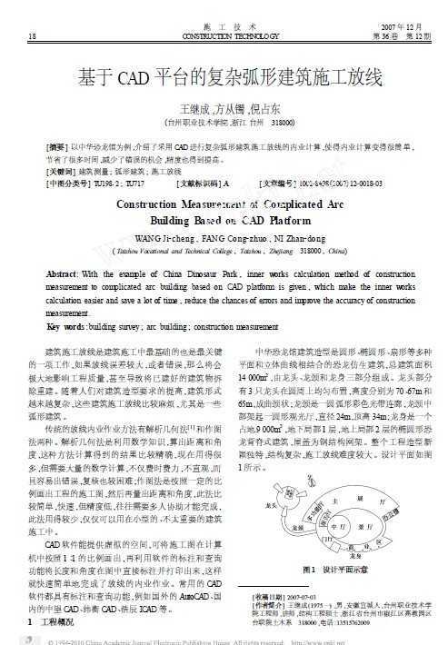 介绍: [摘要] 以中华恐龙馆为例,介绍了采用CAD 进行复杂弧形建筑施工放线的内业计算,使得内业计算变得很简单,省了很多时间,减少了错误的机会,精度也得到提高。