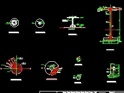 介绍: 圆形单柱花架详图包括花架顶平面、花架底平面、花架立面、花架基础平面、花架结构平面等