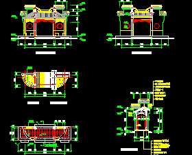 介绍: 某门亭设计施工图,包括门亭正立面,门亭背立面,侧立面,屋架平面,门亭平面等,供各位参考