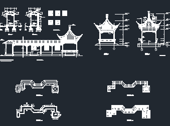 介绍: 连廊设计详图包括廊局部展开立面、正立面图、剖面图、屋架仰视图、屋顶平面图等
